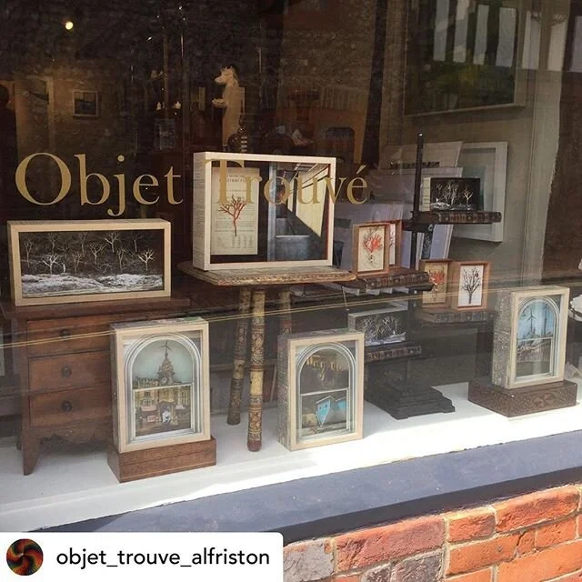 Frances Bloomfield is a UK based artist who currently works in three dimensional collage and mixed media. She has established a strong reputation as a contemporary artist working in a broadly Surrealist tradition. Recently Bloomfield had a solo show at Farley’s Gallery, part of the Farley’s farmhouse and Gallery, The Home of the Surrealists: Lee Miller and Roland Penrose.